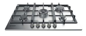 Indesit Hob Gas 75cm St/Steel (Front Controls/ Cast Iron)